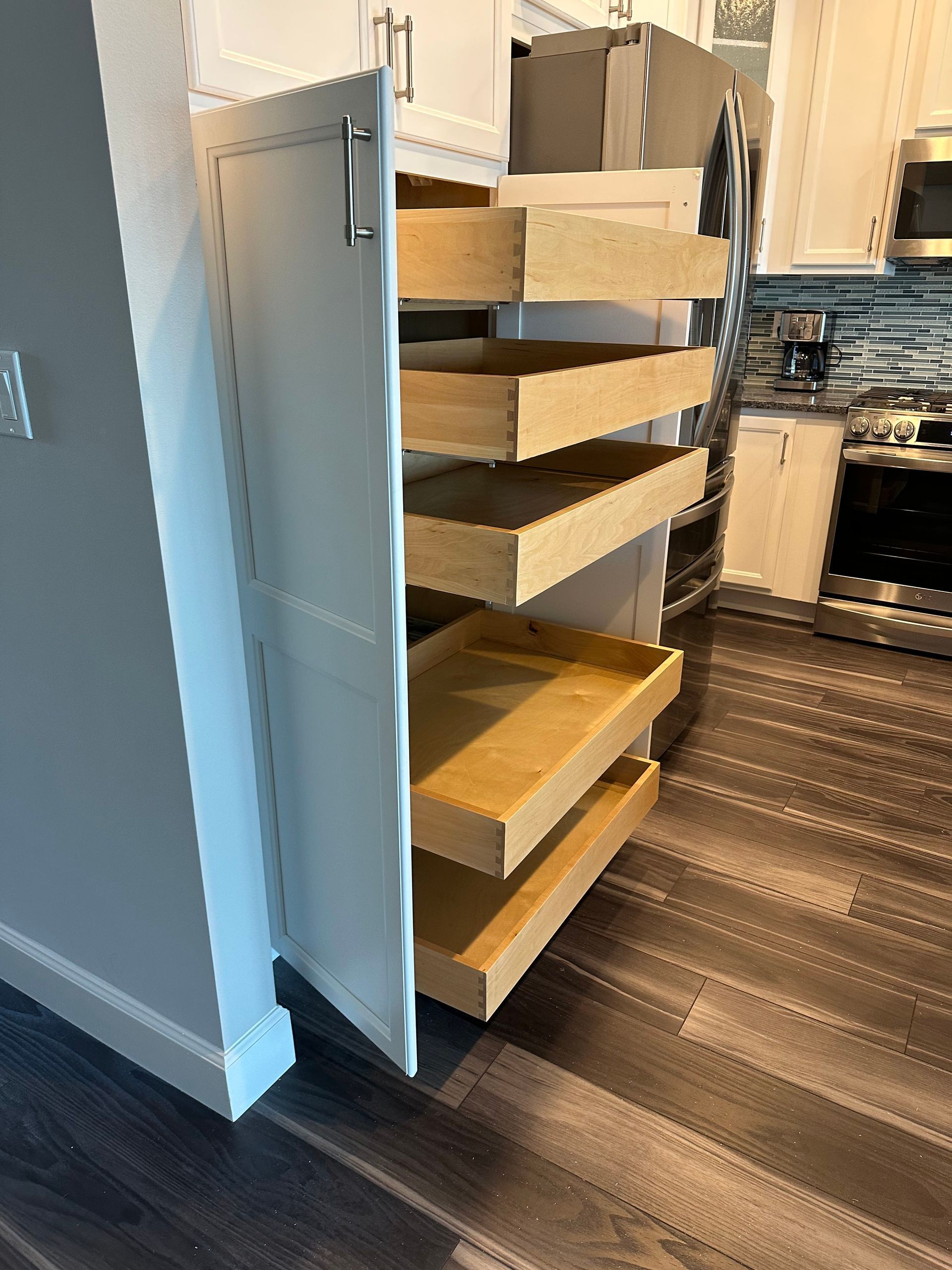 Step into a world where your home dreams come to life! Imagine built-ins that fit like a glove, roll-out shelves that make life easier, and pantries and closets that keep everything perfectly organized. Picture mudrooms that handle the mess and garages that are neat and tidy. With our specialty trim and custom designs, every detail is crafted to perfection. We love nothing more than turning your vision into a beautiful reality!