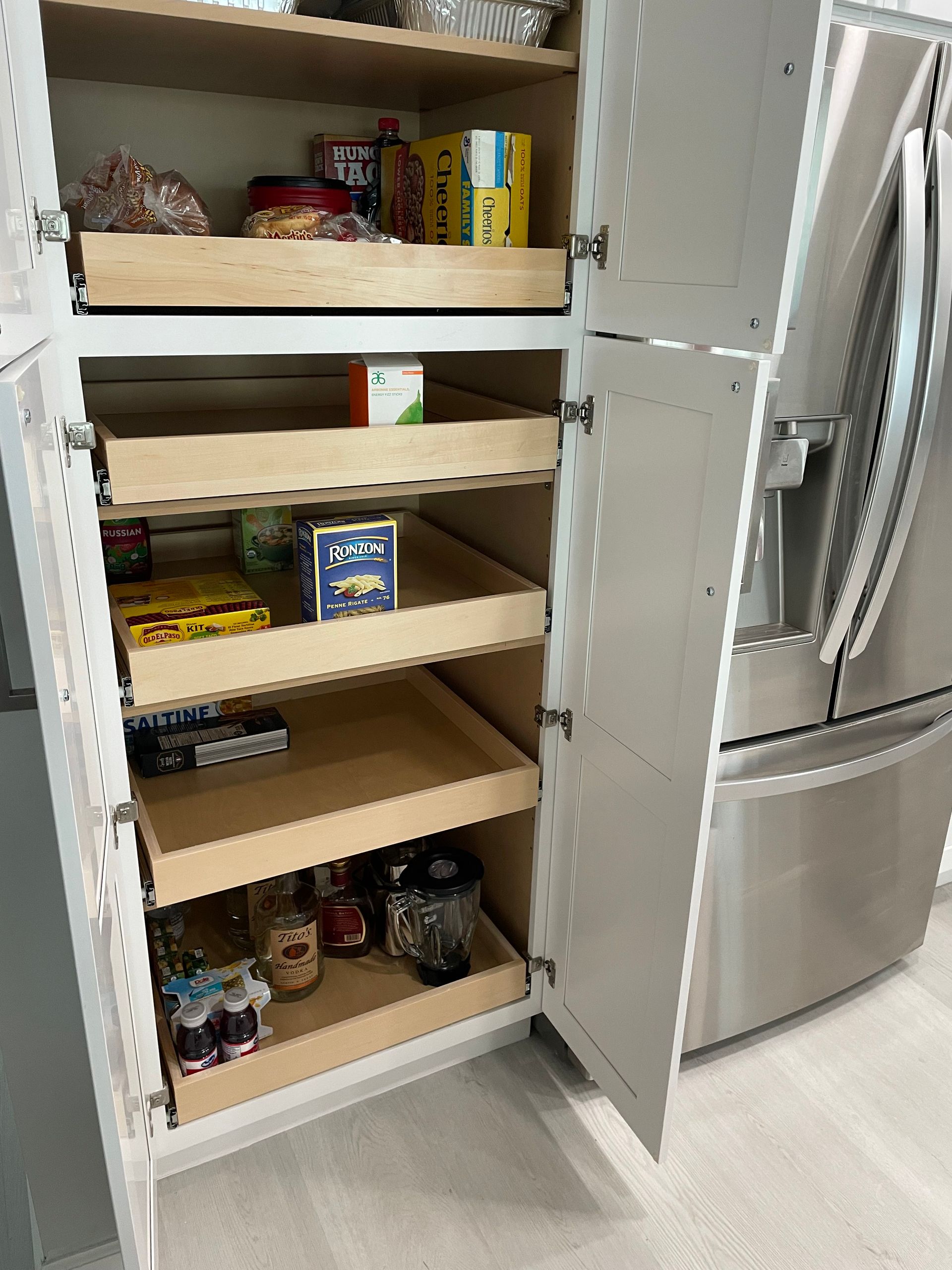 Take charge of your organization and maximize your storage space effortlessly. Roll-out shelves are a game-changer in organizing and maximizing your storage space with a simple pull-out motion. The number one reason you need them is convenience. By utilizing roll-out shelves, you will be able to effortlessly access the full depth of your cabinets or pantry and easily access items tucked away in the back of your shelves without having to strain or dig through layers of items.